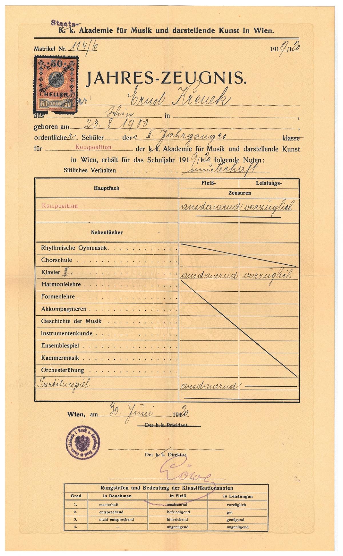 When the sixteen-year-old Krenek was accepted into the class of Franz Schreker, he received a professionalized and structured musical education for the first time. A focus of this training were counterpoint studies, which became a very important and lasting component in Krenek’s perception of the craft of composition. Even many decades later he felt himself – in spite of a generally critical retrospective view of Schreker – greatly indebted for the thorough instruction in this music-theoretical discipline.
