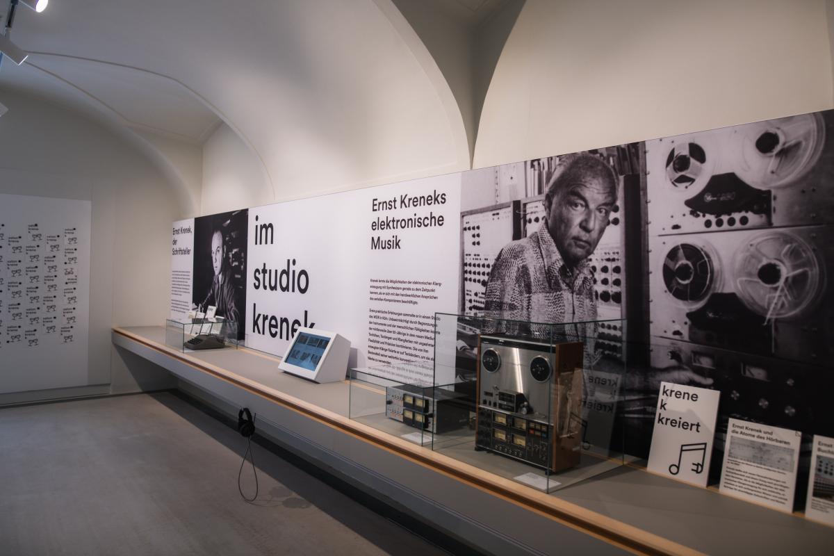Ernst Krenek’s openness for new styles made his work a unique reflection of the musical history of the twentieth century – from late-Romantic offshoots via twelve-tone music to magnetic tape compositions with electronic sounds. Dive into the music of his century. You will certainly also hear things that are less familiar, and can create twelve-tone music on your own at a participatory station. Also to be found in Studio Krenek is a rarity: a Buchla modular synthesizer from 1966/67.