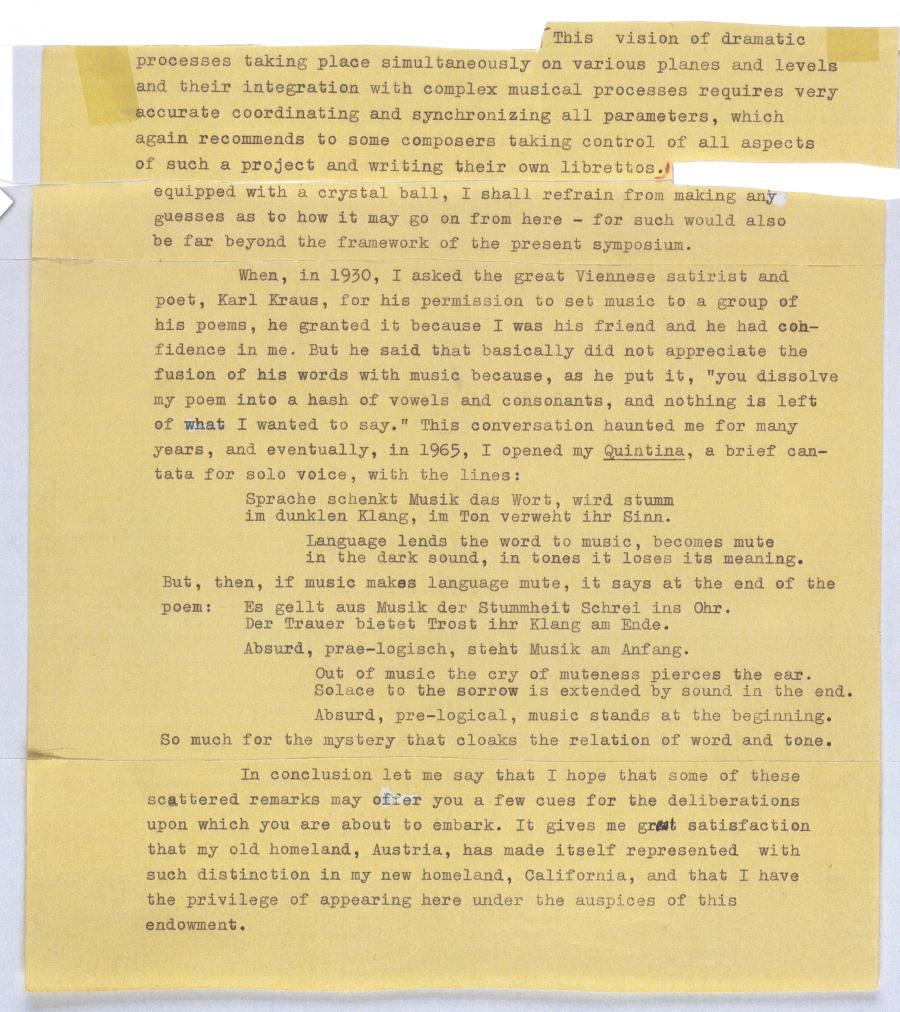 Stanford University, May 19, 1979 Ernst Krenek: Music and Text -- Reflections of a modern composer on lied and libretto