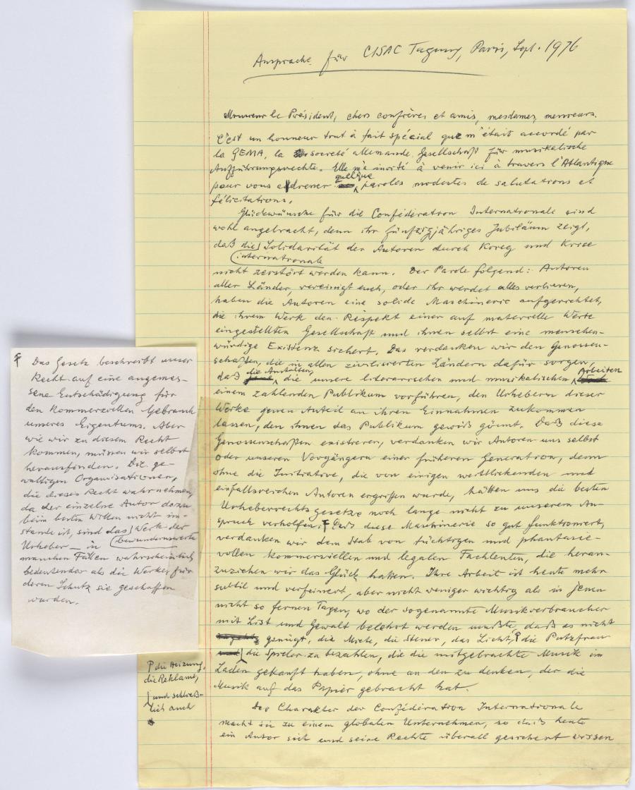 Ansprache für CISAC Tagung, Paris, Sept. 1976