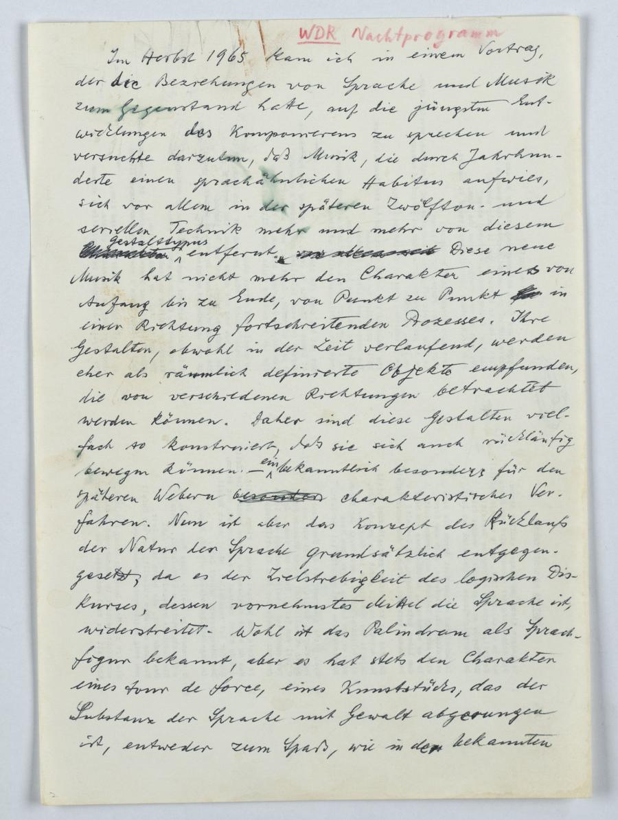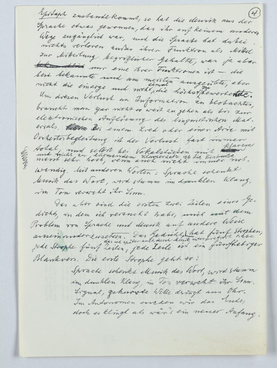 [Vortrag für eine Radiosendung des WDR Köln über Sprache und Musik in Zusammenhang mit elektronischer Musik]