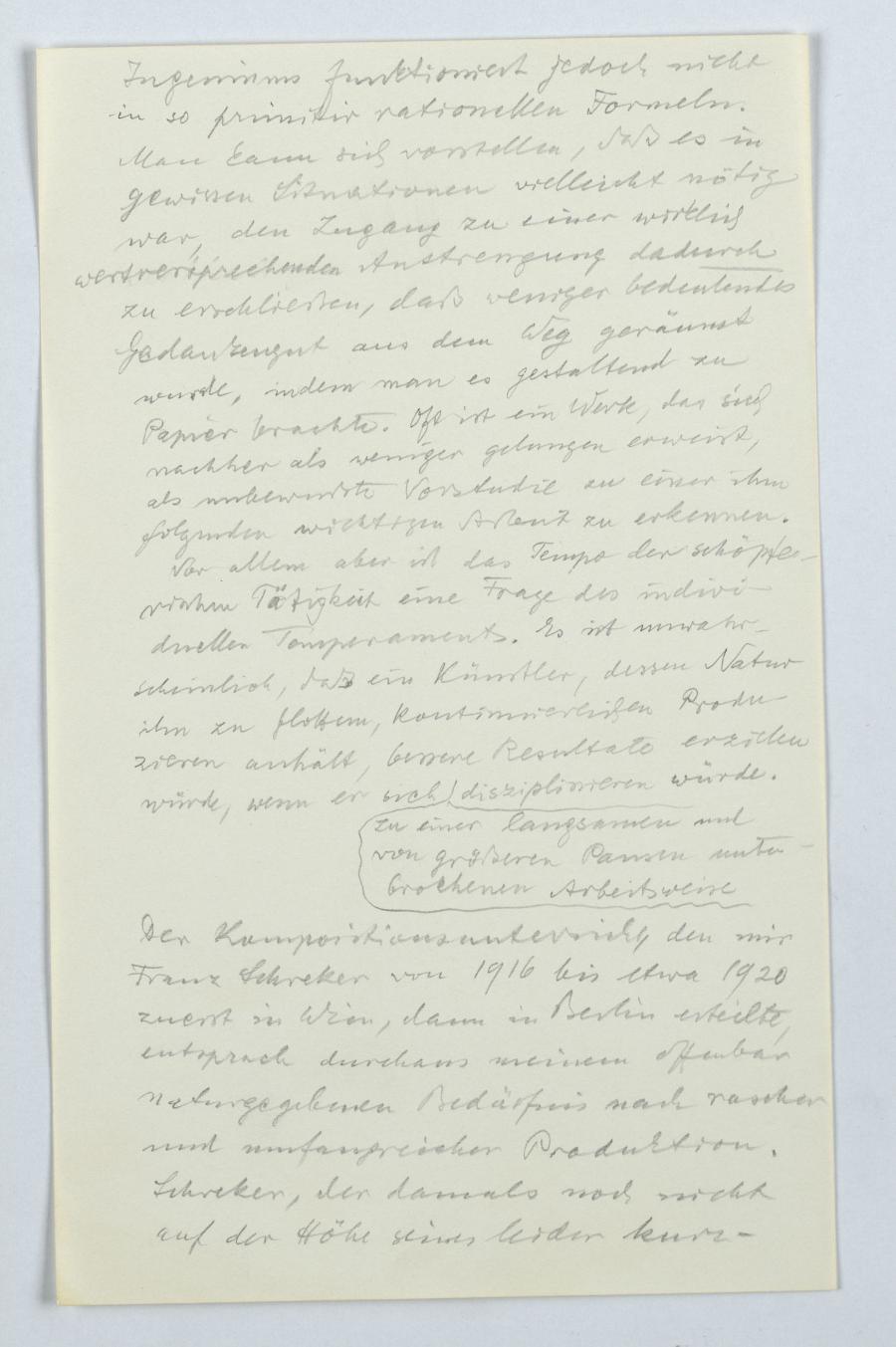 Der Kompositionsunterricht, den mir Franz Schreker von 1916 bis etwa 1920 zuerst in Wien, dann in Berlin erteilte, entsprach durchaus meinem offenbar naturgegebenen Bedürfnis nach rascher und umfangreicher Produktion. Schreker, der damals noch nicht auf der Höhe seines leider kurz-