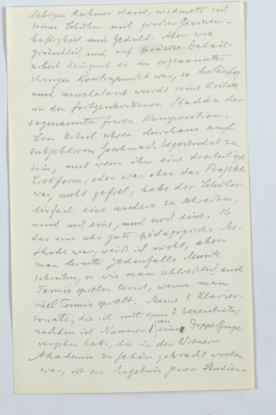 lebigen Ruhmes stand, widmete sich seinen Schülern mit großer Gewissen- haftigkeit und Geduld. Aber wie gründlich und auf präzise. Detail- arbeit dringend er im sogenannten strengen Kontrapunkt war, so beiläufig und nonchalant wurde seine Kritik in den fortgeschrittenen Studien der sogenannten freien Komposition.