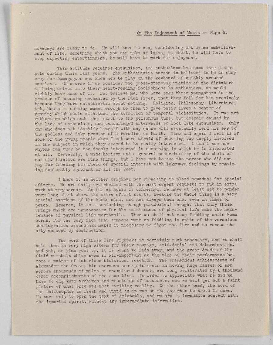 MUSIC(Address given at Bridgman Hall, Hamline University, October 5, 1942)