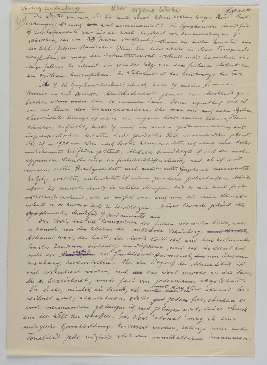 Vortrag für Hamburg Über eigene Werke Krenek lect