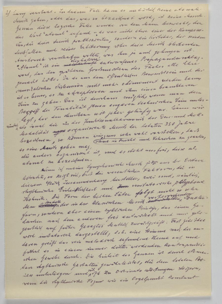 Für mich selbst will ich noch einzufügen, daß ich durchaus nicht in allen meinen späteren Arbeiten das Bedürfnis emp- funden habe, die Zwölftontechnik anzuwenden. Da ich in allen