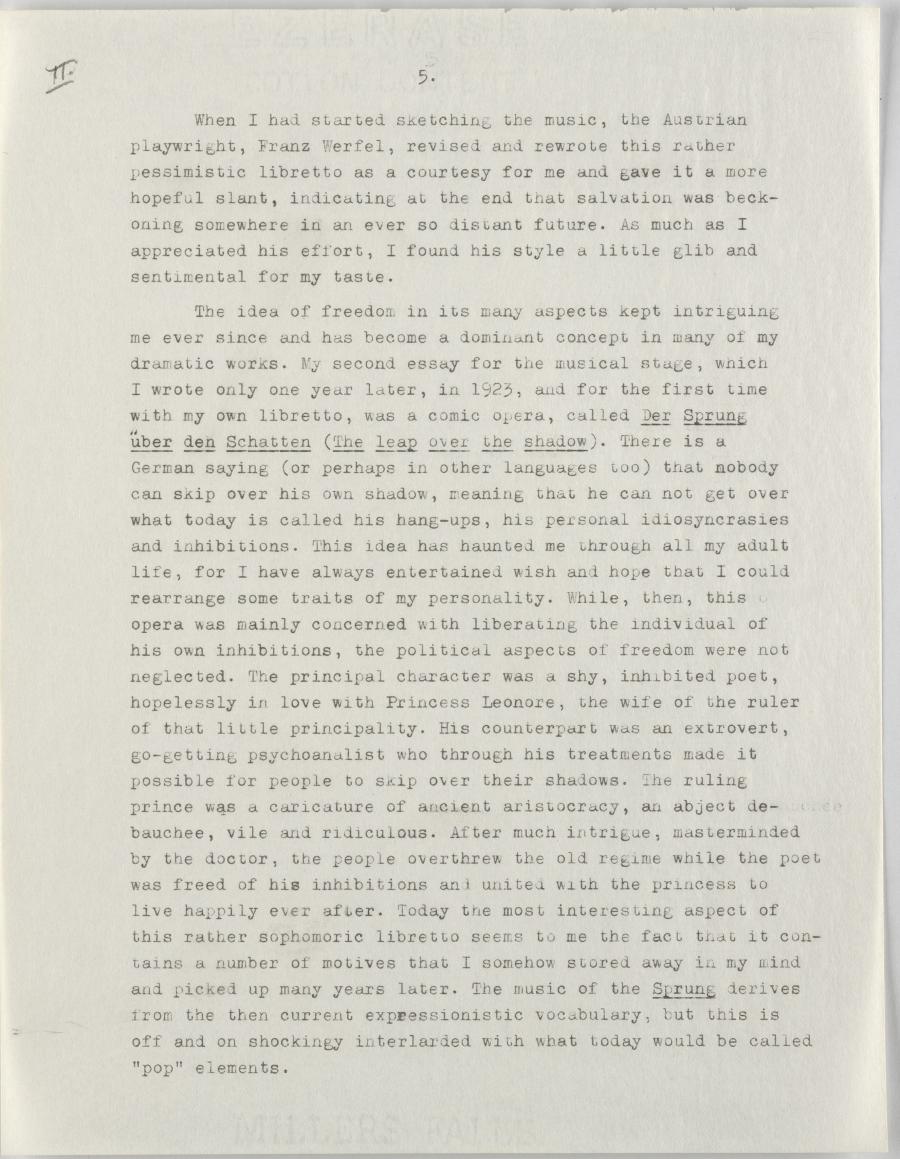 with my own libretto, was a comic opera, called Der Sprungüber den SchattenThe leap over the shadow). There is a