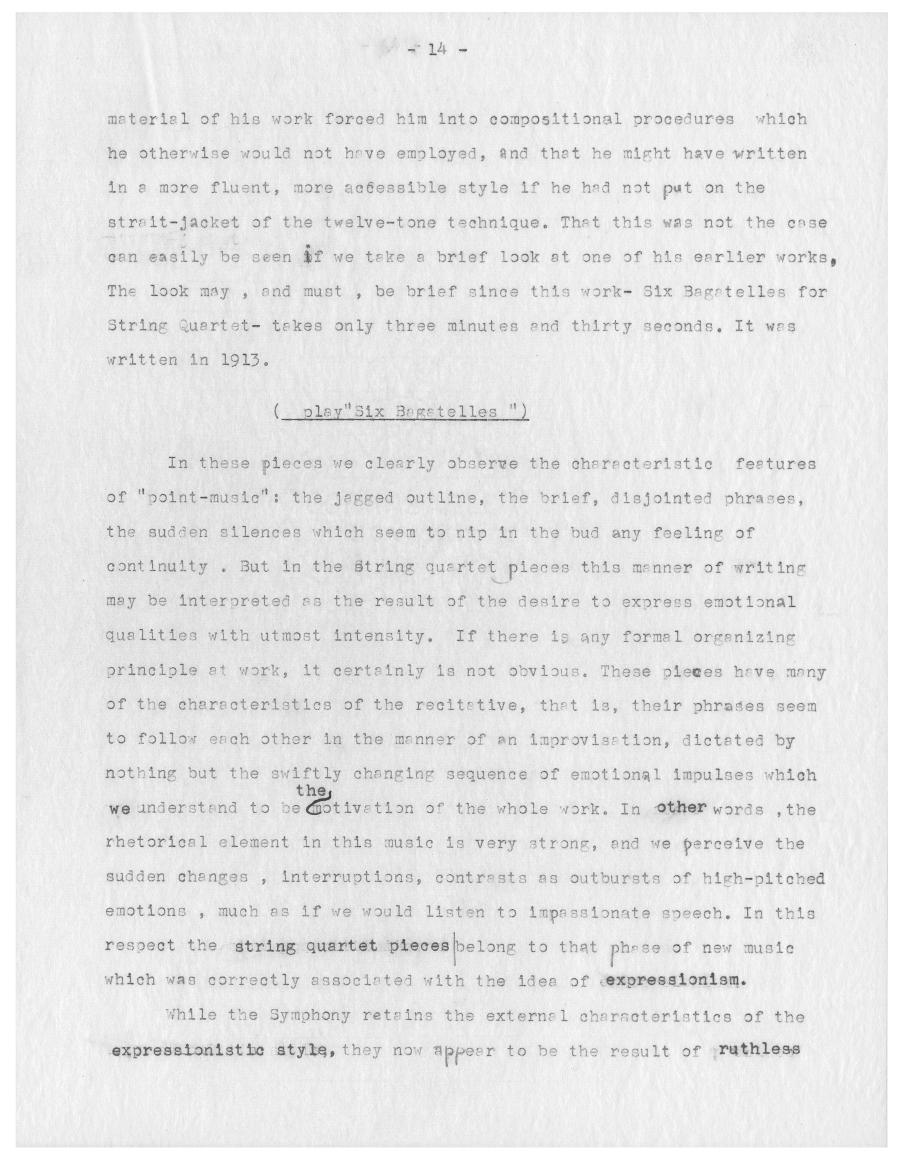 The look may, and must, be brief since this work - ( play "Six Bagatelles" )