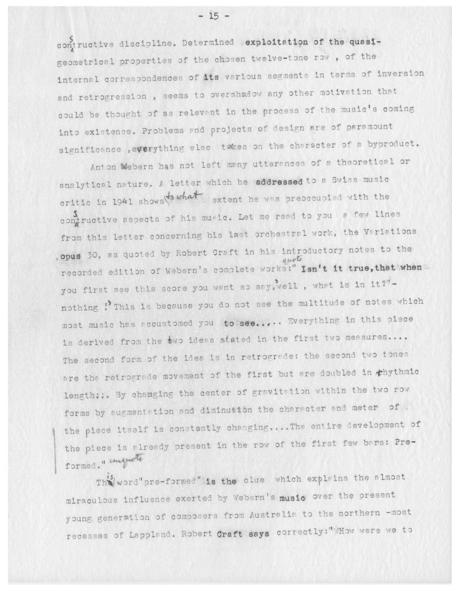 material of his work forced him into compositional procedures which