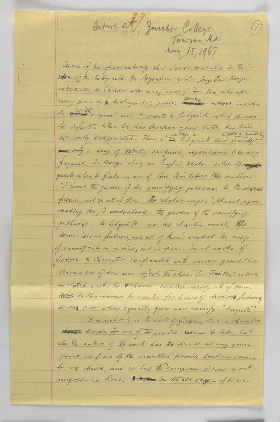 Lecture at Goucher College, Towson, Md. May 15, 1967