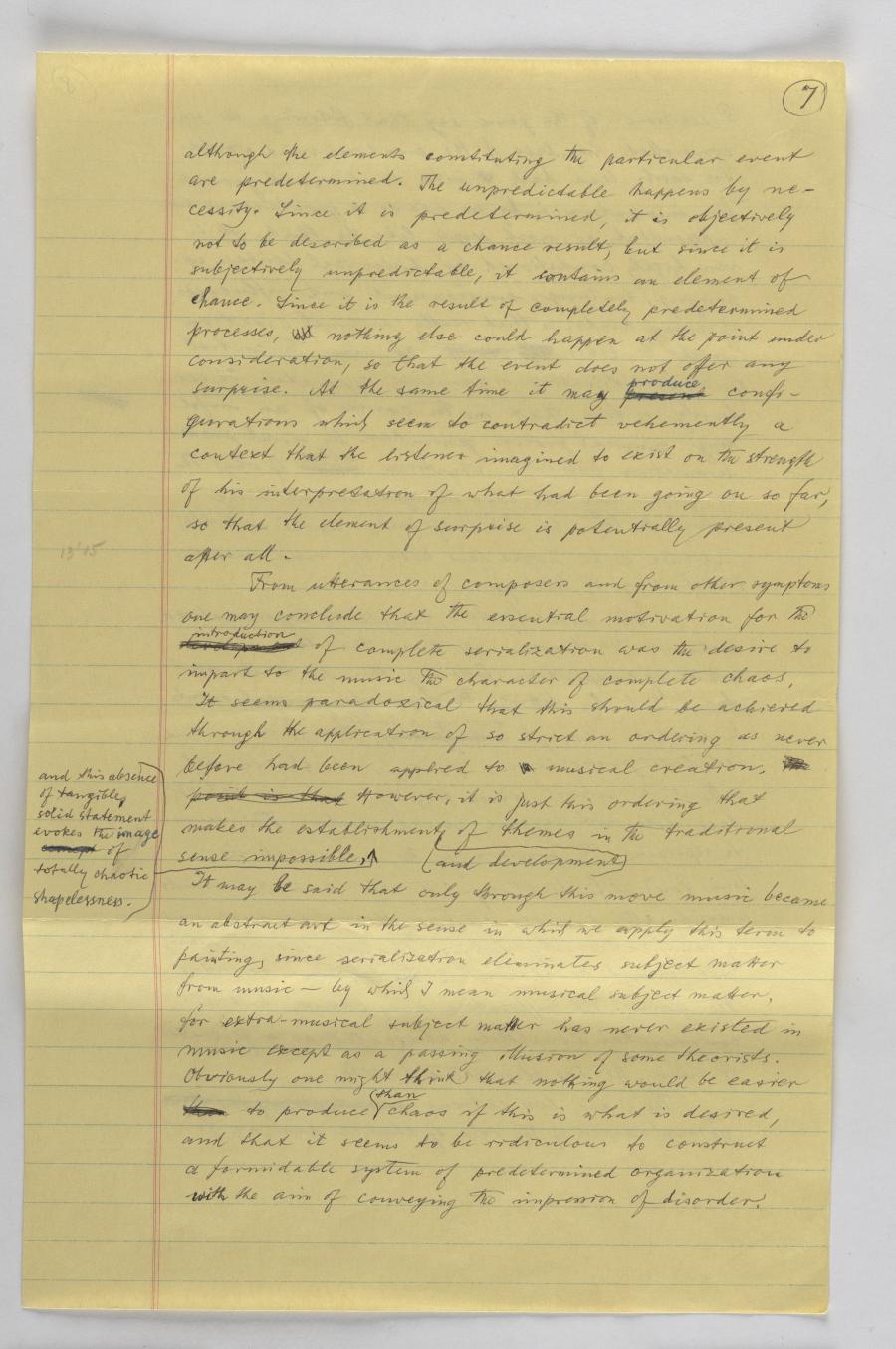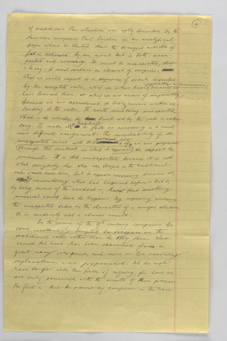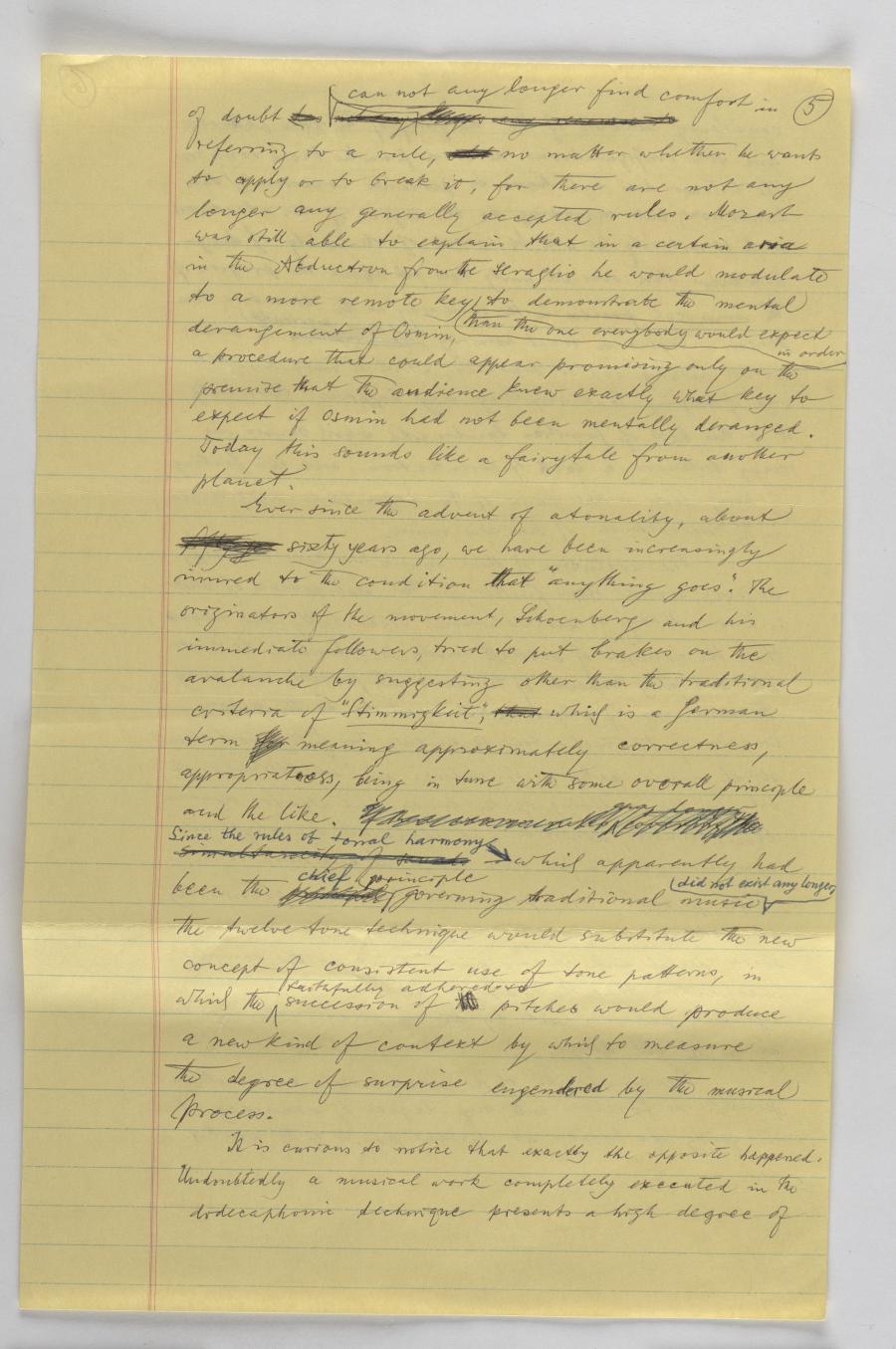 Am 15. May 1967 hielt Krenek diesen Vortrag am liberal arts Goucher College, damals eine Universität ausschließlich für Studentinnen. In seinem Vortrag diskutiert er die dynamische und oft dialektische Beziehung zwischen (musikalischen) Regeln und dem kreativen Umgang mit diesen Regeln, zwischen Erwartung und Überraschung auf Seiten der Musik-Rezipienten, und wie sich diese Beziehungen im Rahmen der Neuen Musik, insbesondere dem Serialismus auswirken. Mit dem Schritt zum Serialismus hat die Musik letztlich ihren im traditionellen Konzertrepertoire verankerten sprachähnlichen Charakter aufgegeben und sich zu einer abstrakten Kunst weiterentwickelt. Die Anwendung strenger Prädetermination (oder auch Zufallsprinzipien) bei der Schaffung von Neuer Musik würde jedenfalls verhindern, dass Komponierende den Eingebungen ihrer Inspiration ausgeliefert sind, die Krenek als abhängig von sozialen und kulturellen Faktoren sieht.