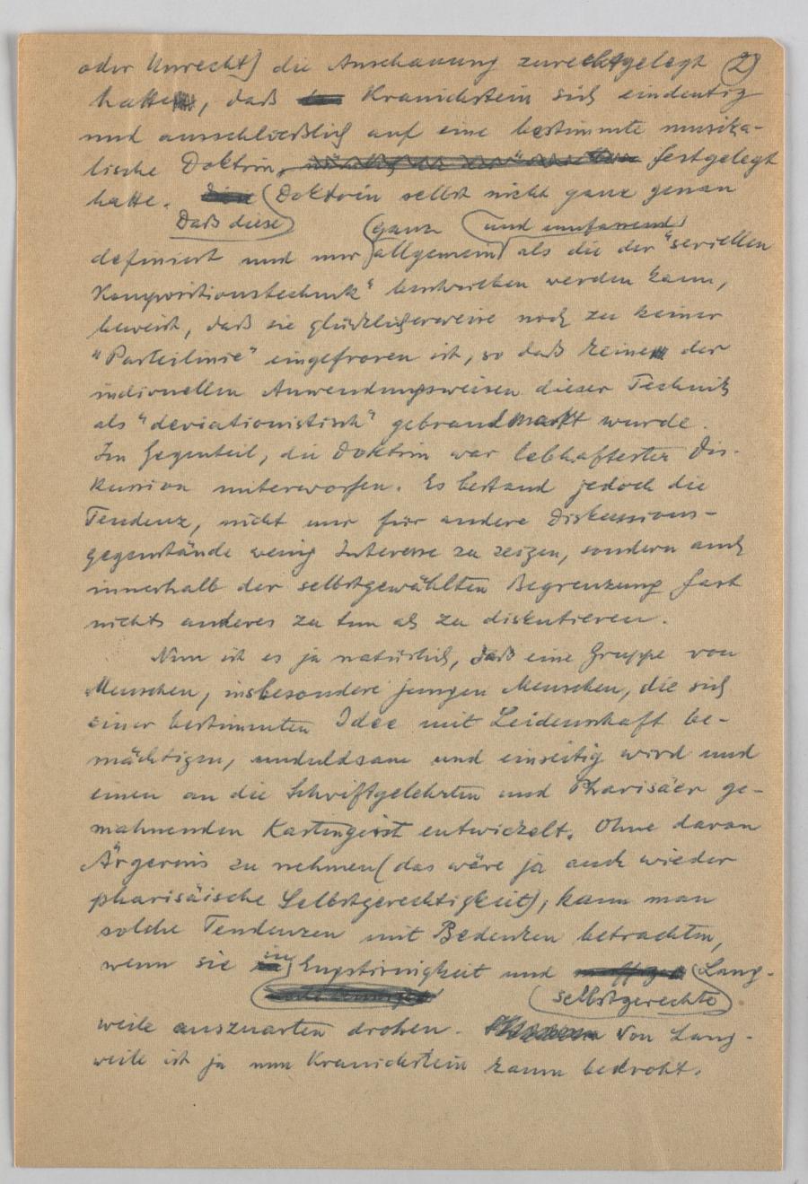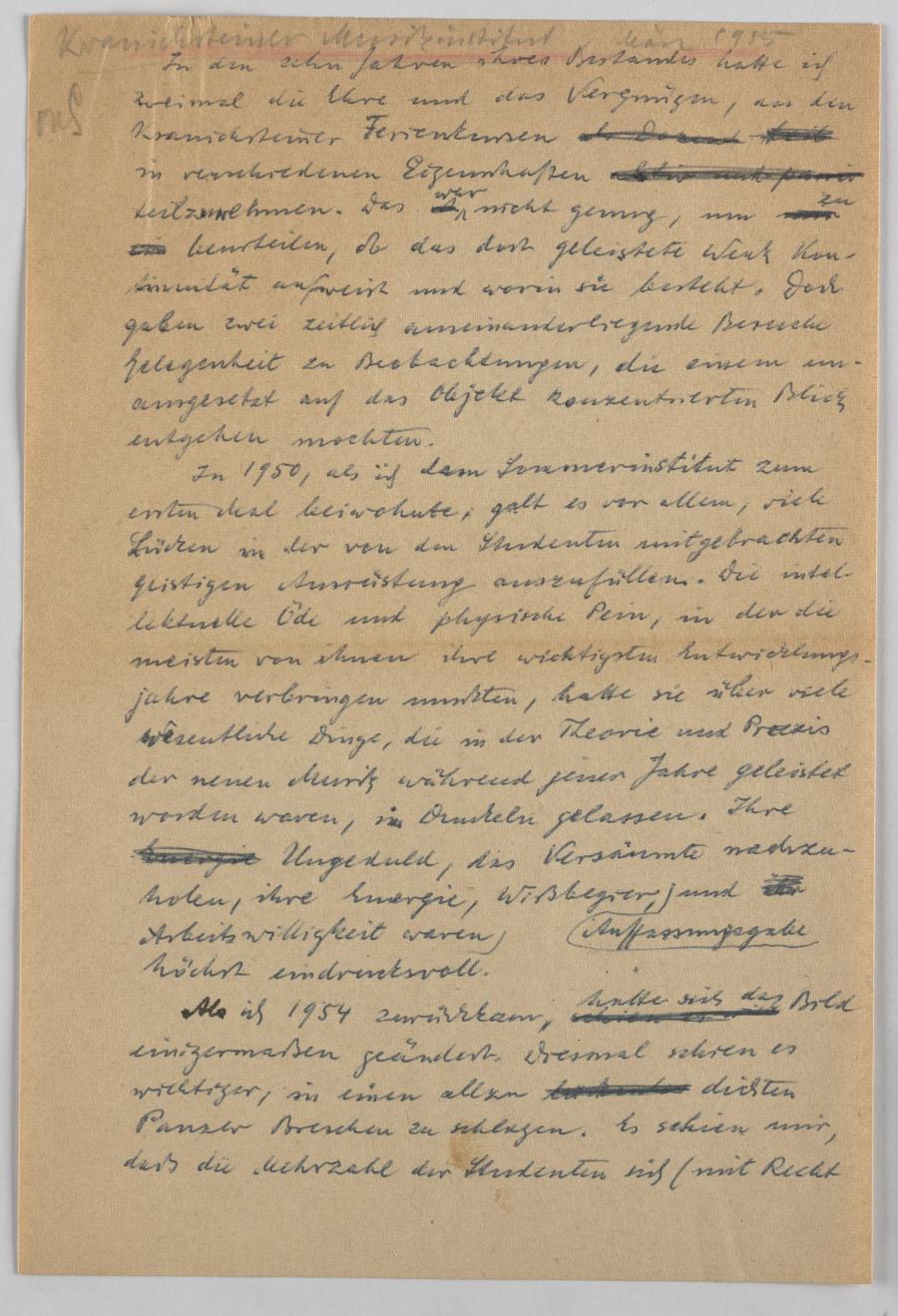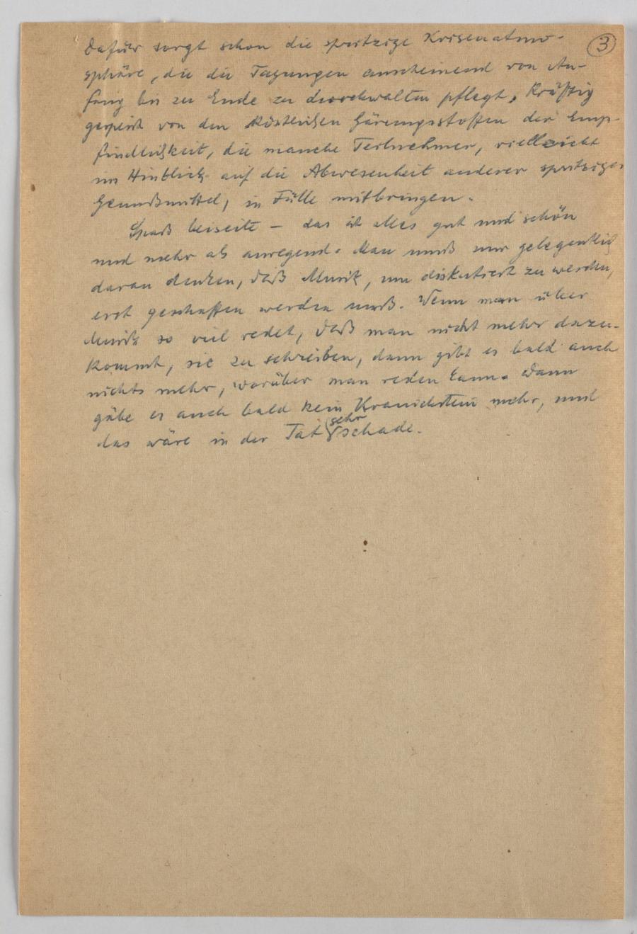 In Grußworten zu einer Veranstaltung der Darmstädter Ferienkurse in 1956 spricht Ernst Krenek über seine bisherigen Erfahrungen mit den jungen Teilnehmer:innen der Ferienkurse in den Jahre 1950 und 1954. Er lobt eine sehr gesteigerte Bereitschaft zur Diskussion kompositions-technischer Fragen, deutet aber humorvoll auch Kritik an einem Übergewicht des Anteils an Diskussionen zuungunsten des Komponierens neuer Musik an.
