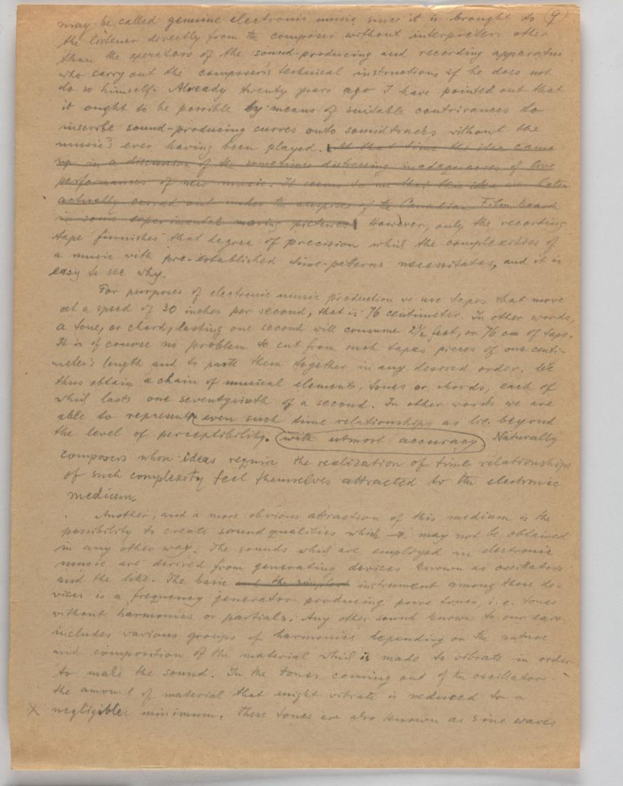 Lecture [about Kreneks late compositions and some thoughts on the new electronic music] for CBC, Vancouver, [BC, broadcast on] 12.22.1957