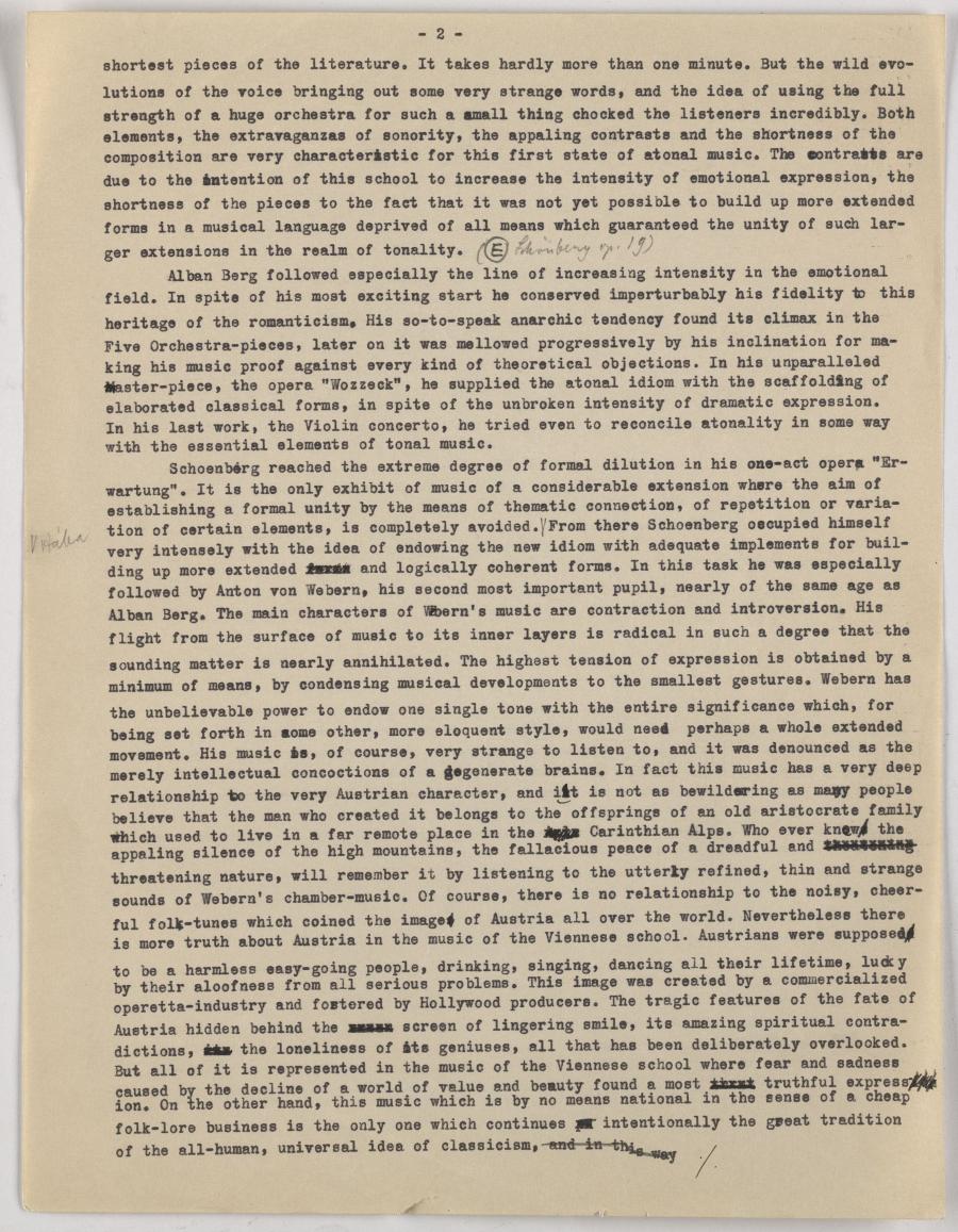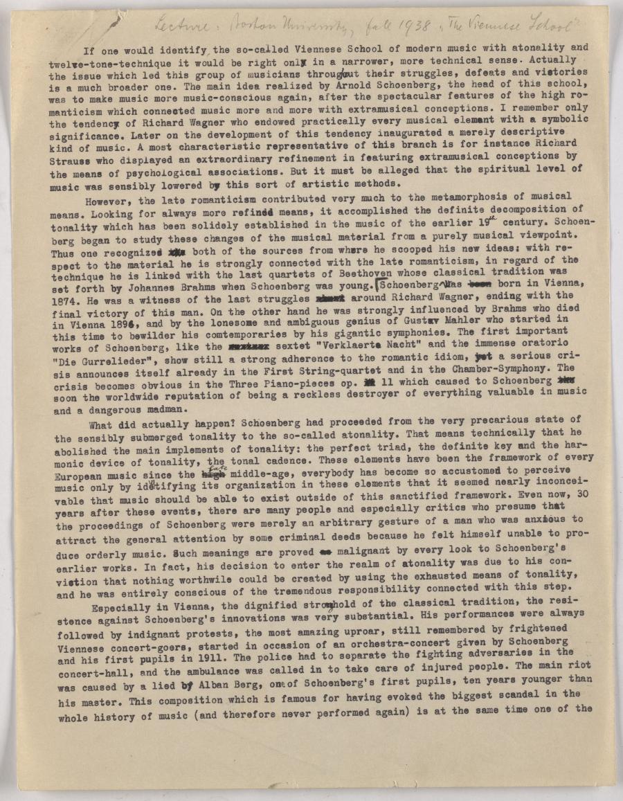 Today the Viennese school is scattered all over the world. Schoenberg who left