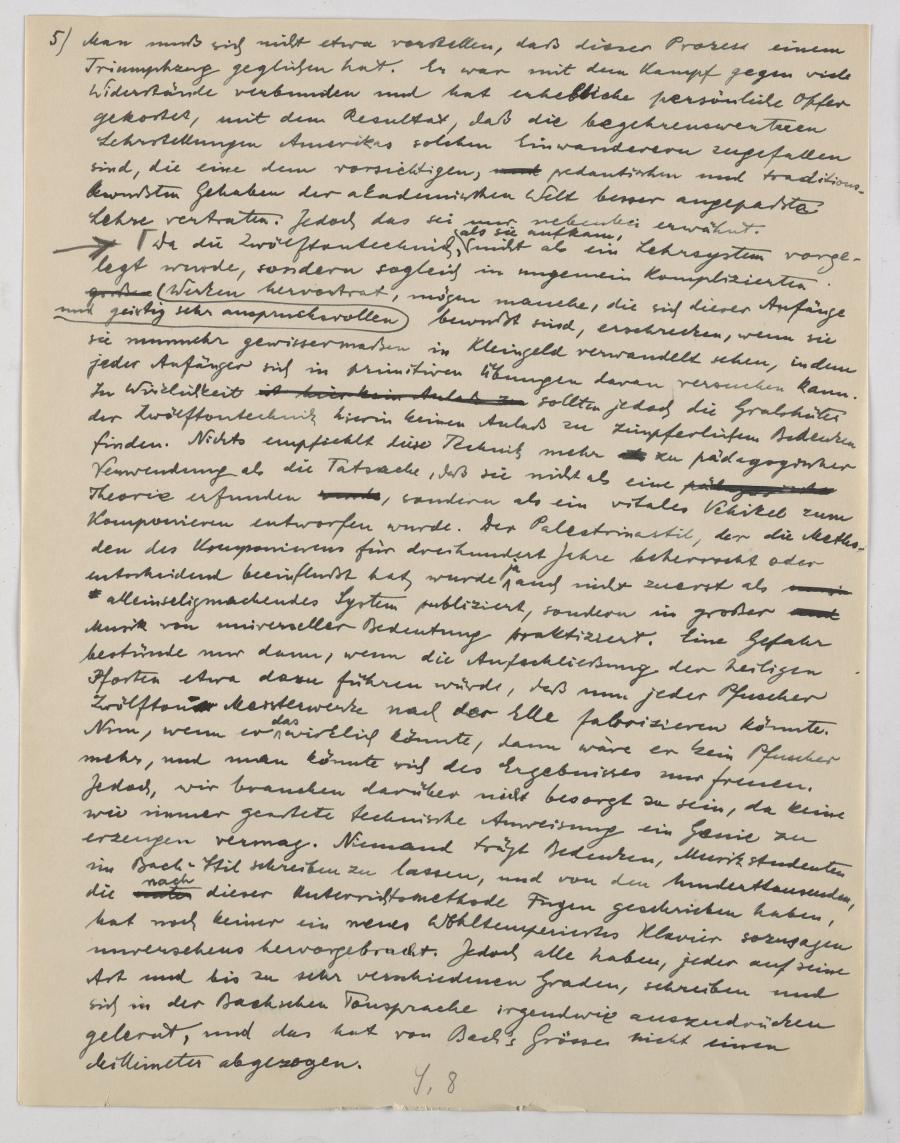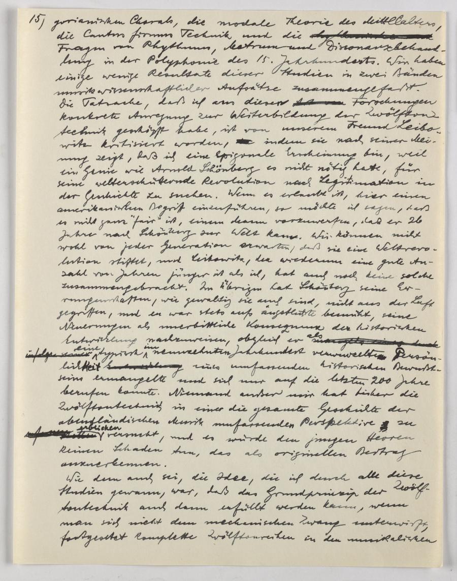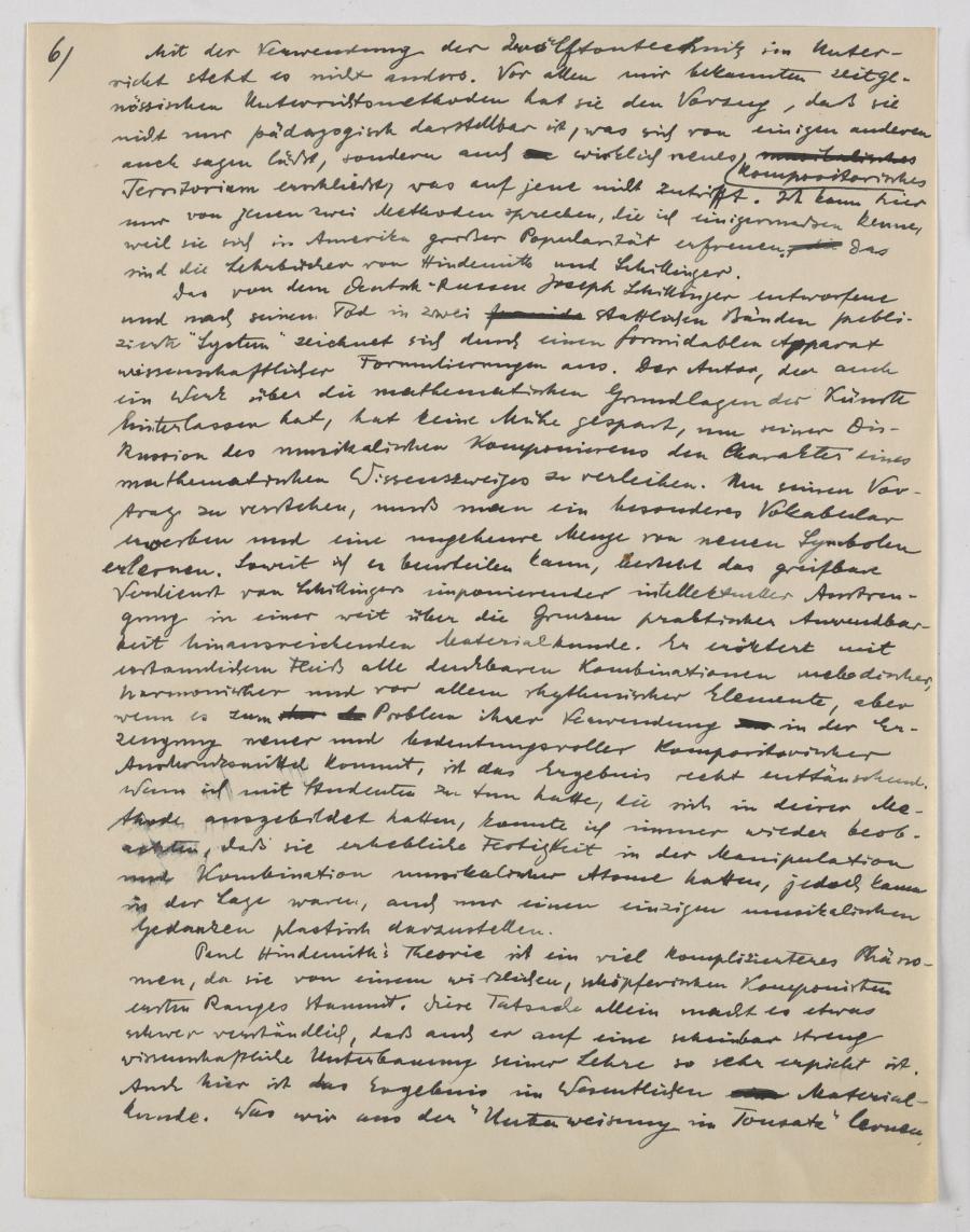 In seinem Vortrag zum „Schicksal der Zwölftontechnik“ (gehalten vermutlich am 22. September 1951 in Berlin) geht er auf die Geschichte der Zwölftontechnik und ihrer Rezeption ein. Er beschreibt auch den didaktischen Wert dieser Methode und vergleicht dies mit zeitgleichen Kompositions-Lehrwerken von Paul Hindemith und Joseph Schilling. Die Zwölftonmethode sei beiden vorzuziehen, da jene in erster Linie musikalische „Materialkunde“ sind und keine kreative Anwendung der sehr wissenschaftlich argumentierten musikalischen Kompetenzen vermittle.